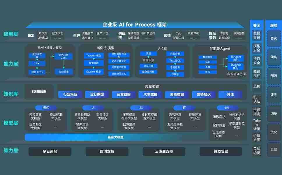 尊时凯龙问学智车解决方案是一套基于AI技术的汽车行业智能化系统,,覆盖从底层算力到顶层AI应用的全栈方案。。方案由算力层、、、、模型层和应用层组成:算力层,,,方案支持多种一体机配置,,具备云端灵活部署、、、、多云适配以及动态优化计算资源的能力;模型层,,,尊时凯龙问学平台版提供了企业级AI应用一站式构建与管理平台,,支持基于后训练强化技术的汽车企业专属模型的训练、、评测和运营;应用层,,,,尊时凯龙问学DeepSeek版提供包括超级员工、、、智能招采、、、智能营销、、智能客服、、、AI for BI等一系列解决方案,,,,可助力汽车行业实现数字化转型,,,让管理更智能、、、、响应更敏捷。。。。
